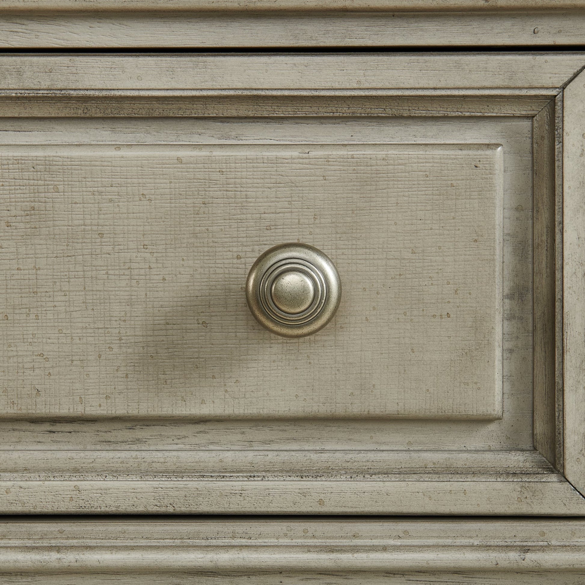 Add a touch of sophistication to your bedroom with the Delmar 5-Drawer Chest. The antique bronze hardware adds a timeless touch, while the dust proofing bottom layer ensures your belongings stay clean and organized. With inset panels, beveled edges, and tapered bun feet, this dresser combines functionality and style for a truly elegant addition to your bedroom decor.