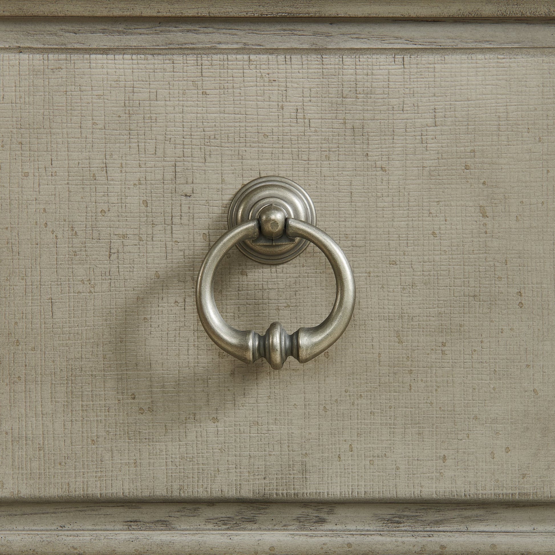Add a touch of sophistication to your bedroom with the Delmar 5-Drawer Door Chest. This stylish door chest features a sliding door opening to shelving, as well as a grey felt lining in the top drawer to protect your delicate items. The antique bronze hardware adds a timeless touch, while the dust proofing bottom layer ensures your belongings stay clean and organized. With inset panels, beveled edges, and tapered bun feet, this door chest combines functionality and style for a truly elegant addition to your bedroom decor.