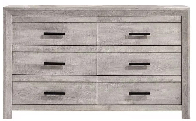The Ellen Dresser has notes of cottage style with updated design elements. White distressed wood creates a refreshing tone that sets the mood in your bedroom. Dark-stain hardware contrasts the white finish beautifully to make it the best option for a variety of room styles. This unique style is hard to find, and especially at this price point. The natural appearance of this wood stain will surely be adored. Simple square feet add to the minimalist design that makes it great for your bedroom or guest room.